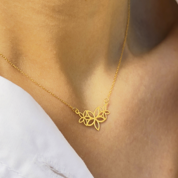 گردنبند طلا سه گل ترکیبی از سادگی، لطافت و درخشندگیه. این گردنبند با طراحی سهگل در همتنیده، نمادی از عشق، پیوند و رشد در کنار یکدیگره. ساختهشده از طلای ۱۸ عیار، با ظرافتی مثالزدنی که روی پوست میدرخشه و جلوهای طبیعی و خاص به استایل شما میبخشه.